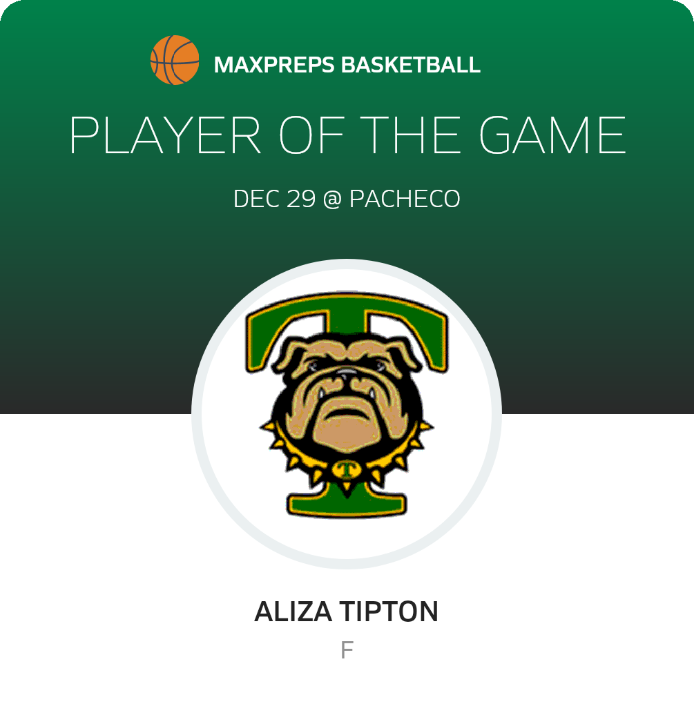 Congratulations to #23 Aliza Tipton for being selected the Tracy Girls JV Basketball Player of the Game.