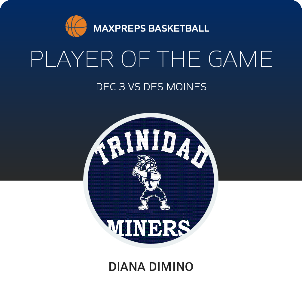 Congratulations to #14 Diana Dimino for being selected the Trinidad Girls Basketball Player of the Game.