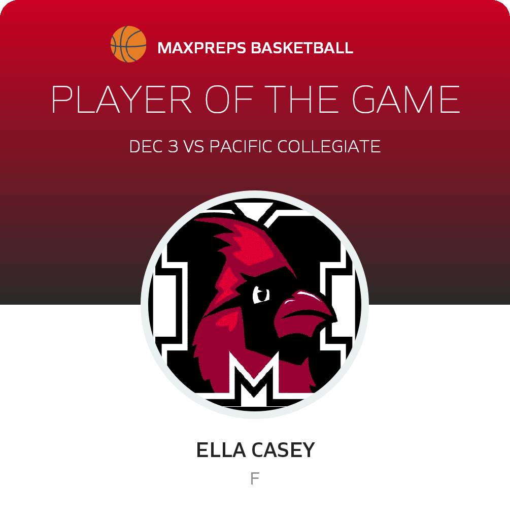 December 3, 2022: Santa Cruz, CA 95060 The Mendocino Cardinals (Mendocino, CA) basketball nipped the host Pacific Collegiate Pumas (Santa Cruz, CA), 29-28 in Saturday's non-league test.