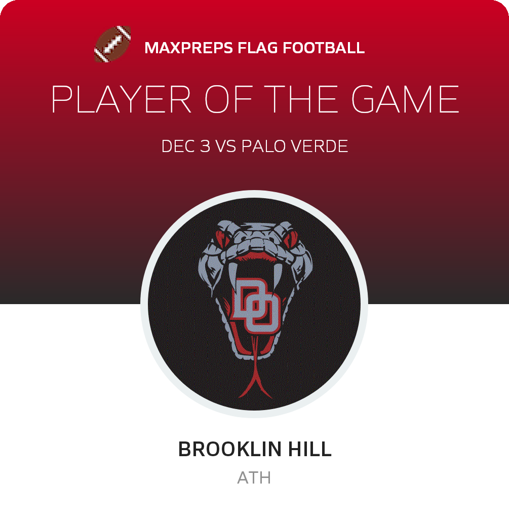 Congratulations to #10 Brooklin Hill for being selected the Desert Oasis Girls Flag Football Player of the Game.