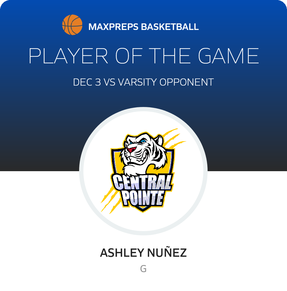 Congratulations to #6 Ashley Nuñez for being selected the Central Pointe Christian Academy Girls Basketball Player of the Game.