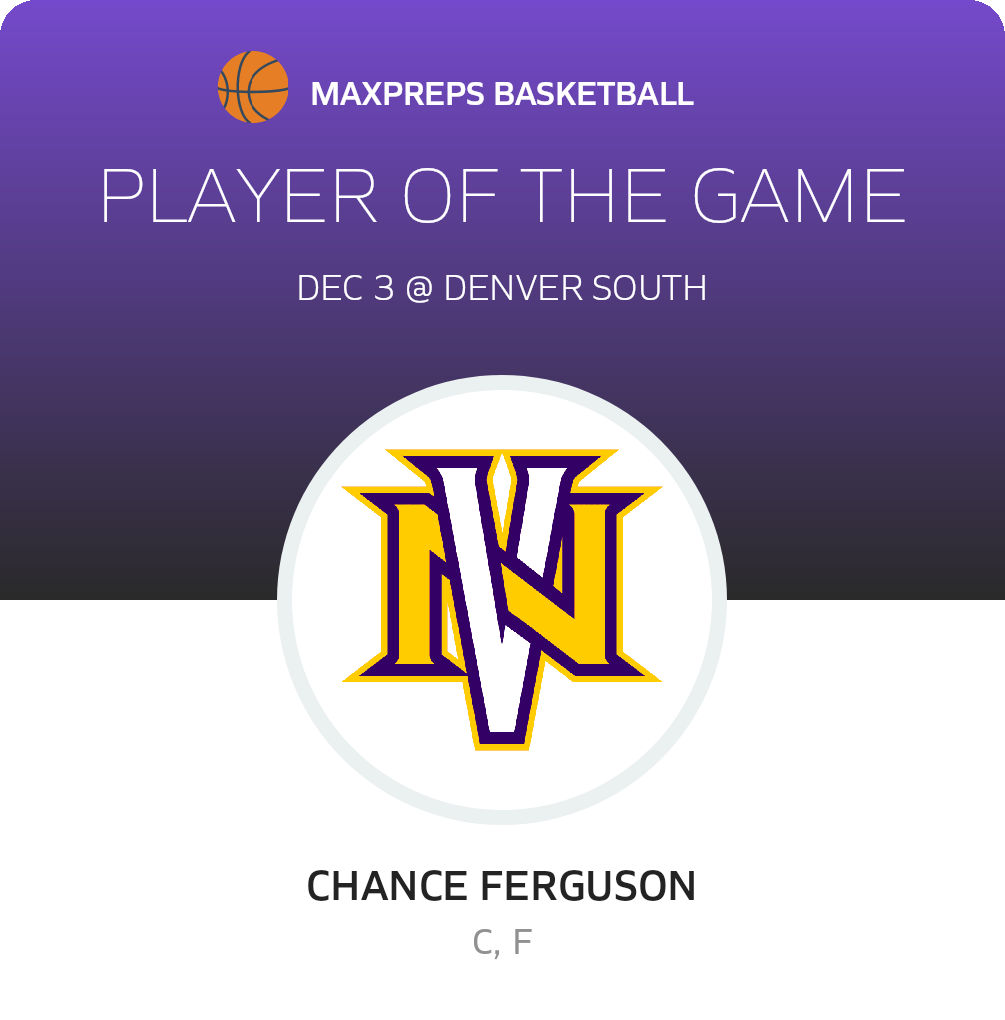 Congratulations to #34 Chance Ferguson for being selected the Denver North Freshman Basketball Player of the Game.