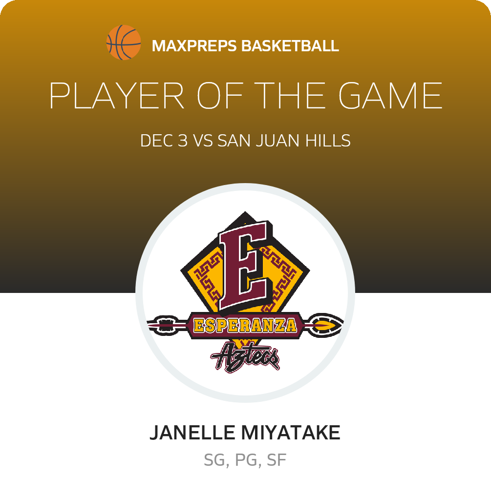 In their next game, the Aztecs battle the Brea Olinda Wildcats (Brea, CA) in a non-league contest, on Friday, December 6. Esperanza will attempt to better on its 5-1 season record. The Wildcats go into the contest with a 4-3 record after their 57-46 non-league loss to Villa Park (Villa Park, CA).