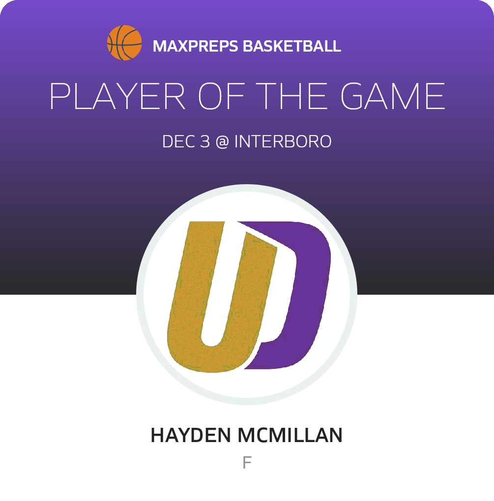 Congratulations to #5 Hayden McMillan for being selected the Upper Darby Girls JV Basketball Player of the Game.