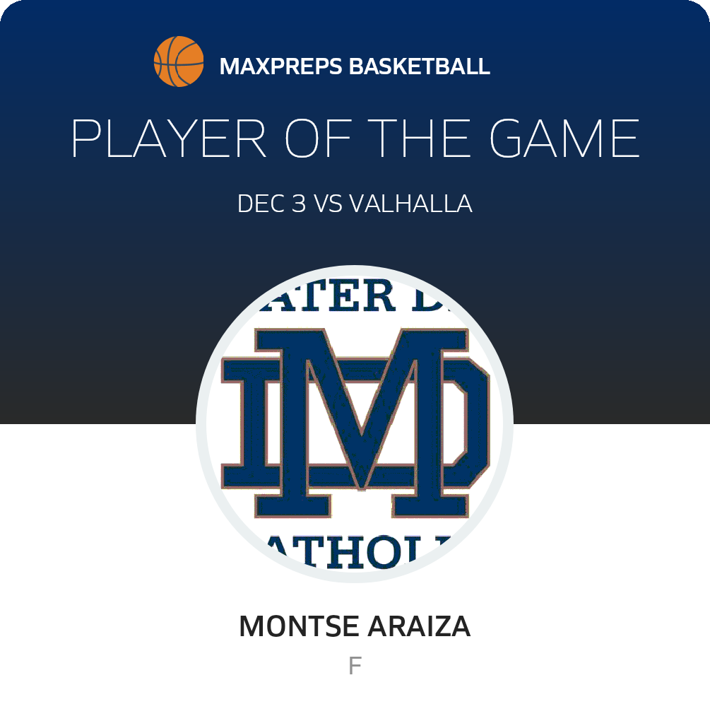 With the victory, Mater Dei Catholic advances its record to 4-2 on the year. The Crusaders host Santana (Santee, CA) to meet the Sultans in a non-league battle on Monday, December 9. The Sultans enter the battle with a record of 0-0.