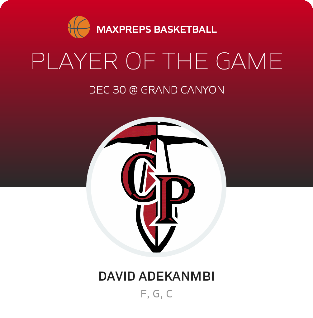 Congratulations to #23 David Adekanmbi for being selected the Chandler Prep Basketball Player of the Game.