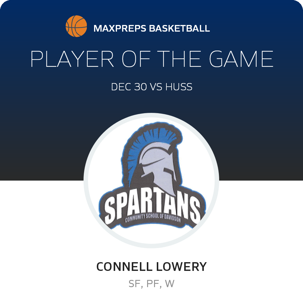 December 30, 2022: Gastonia, NC 28052 The Community School of Davidson Spartans (Davidson, NC) basketball crushed the host Huss Huskies (Gastonia, NC), 79-55 in Friday's non-league test.