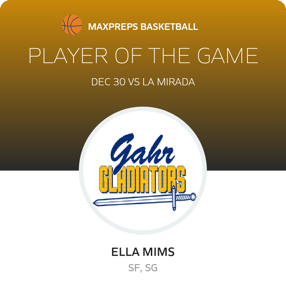 With the victory, Gahr improves its record to 16-2 on the campaign. The Gladiators travel to Lynwood (Lynwood, CA) to confront the Knights in a Gateway challenge on Friday, January 5. The Knights come into the challenge with a record of 7-9.