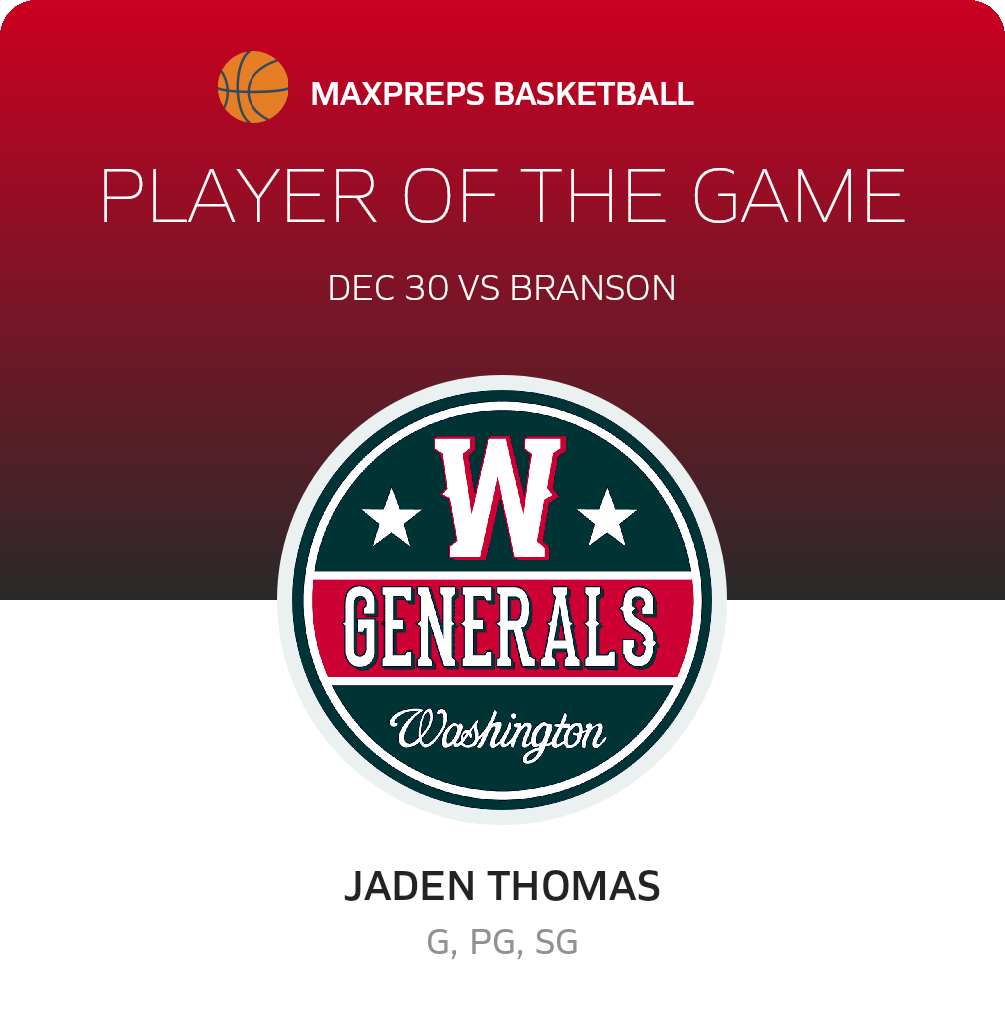 December 30, 2024: Los Angeles, CA 90047 The George Washington Prep Generals basketball team scored 58 points and limited the visiting Branson Bulls to 54 in the Generals non-league triumph on Monday.