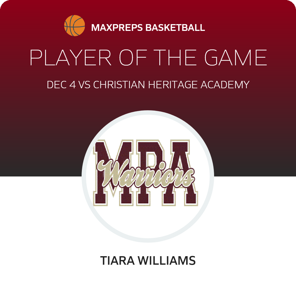 Congratulations to #21 Tiara Williams for being selected the Morgan Park Academy Girls Basketball Player of the Game.