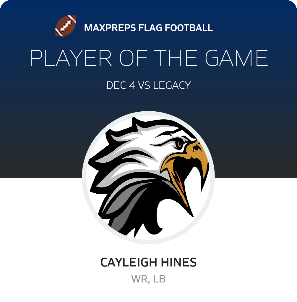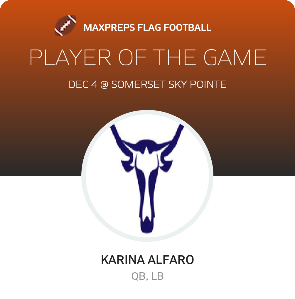 Congratulations to #14 Karina Alfaro for being selected the Legacy Girls Flag Football Player of the Game.