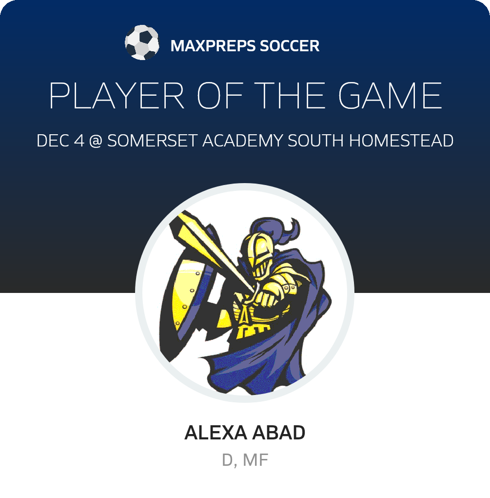 Congratulations to #0 Alina Campos for being selected the Somerset Academy South Homestead Girls Soccer Player of the Match.