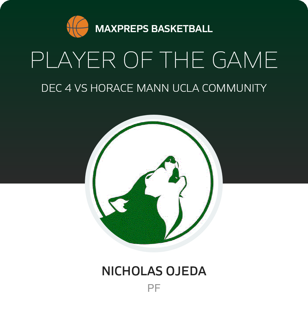 Congratulations to #21 Nicholas Ojeda for being selected the Larchmont Charter Basketball Player of the Game.