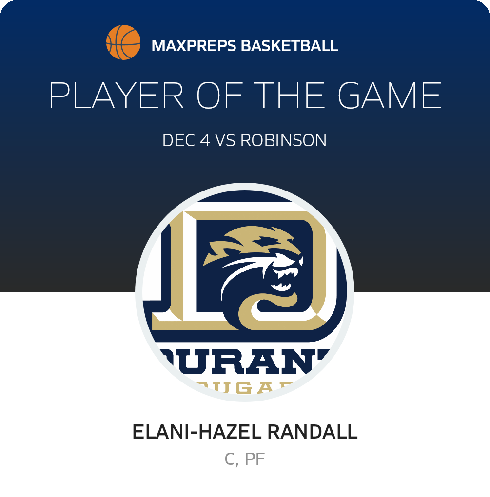 December 4, 2024: Plant City, FL 33567 Durant Cougars (Plant City, FL) boosters left the game satisfied Wednesday as they witnessed their basketball squad notch a victory over the visiting Robinson Knights (Tampa, FL), 43-28 in a non-league match.