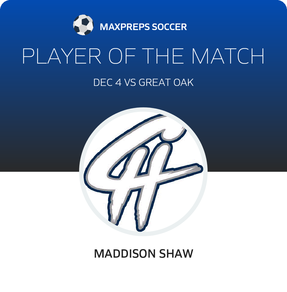 Congratulations to Maddison Shaw for being selected the Chino Hills Girls Soccer Player of the Match.