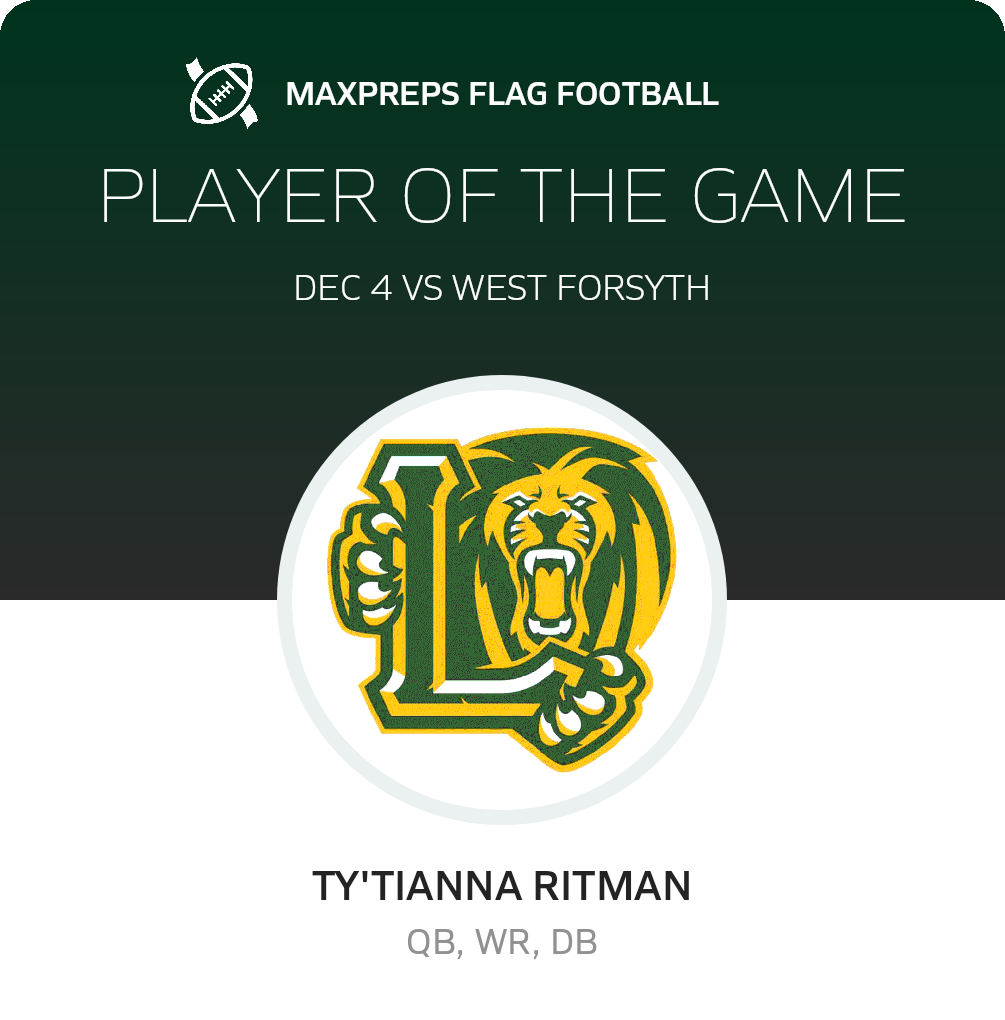 In Thursday's non-league outing, the Lithia Springs Lions (Lithia Springs, GA) flag football squad tipped the host West Forsyth Wolverines (Cumming, GA), by a margin of 12-6.
