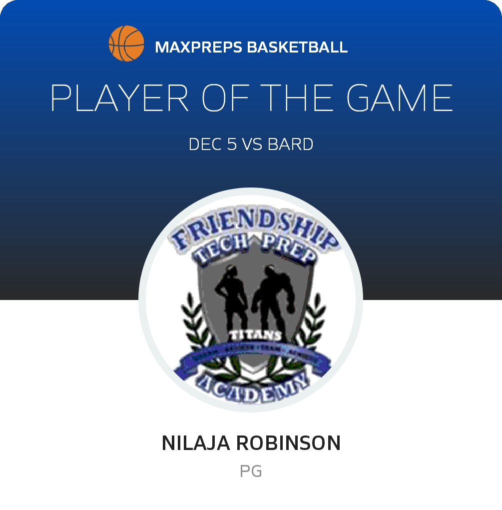 December 5, 2022: Washington, DC 20032 The Friendship Tech Prep Academy Titans (Washington, DC) basketball crushed the visiting Bard Falcons (Washington, DC), 55-15 in Monday's non-league test.