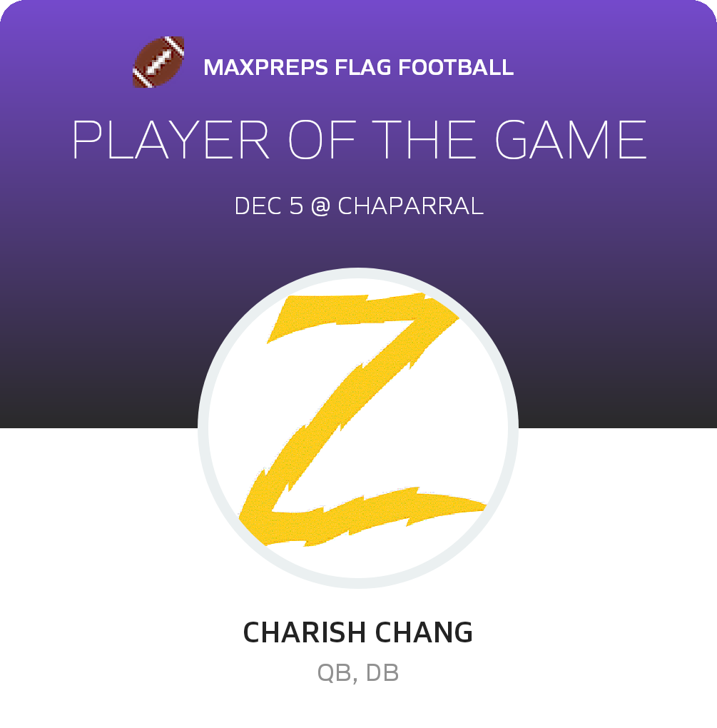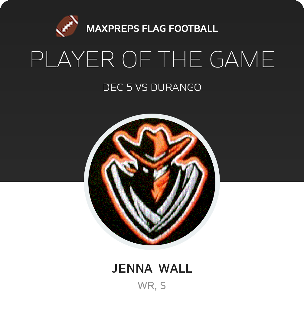 Congratulations to #12 Jenna Wall for being selected the Chaparral Girls Flag Football Player of the Game.