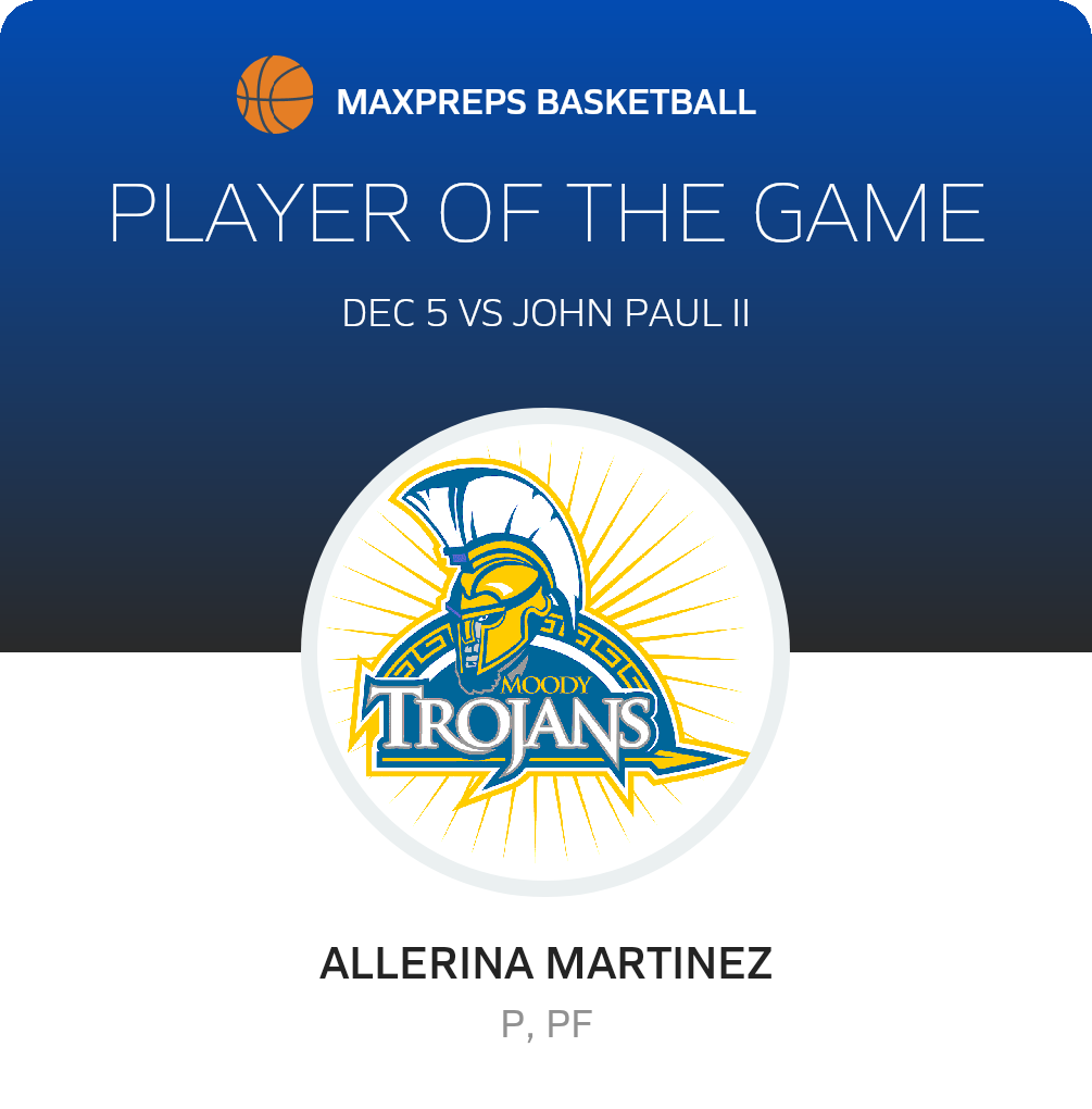 December 5, 2023: Corpus Christi, TX 78416 In Tuesday's non-league outing, the Corpus Christi Moody Trojans (Corpus Christi, TX) basketball squad edged the visiting John Paul II Centurions (Corpus Christi, TX), by a margin of 35-30.