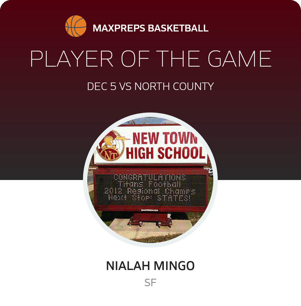 With the victory, New Town improves its record to 1-0 on the campaign. The host Massaponax (Spotsylvania, VA) to play the Panthers in a non-league challenge on Friday, December 8. The Panthers come into the challenge with a record of 1-1. Massaponax won 55-19 in their recent non-league challenge against Miller School of Albemarle (Charlottesville, VA)
