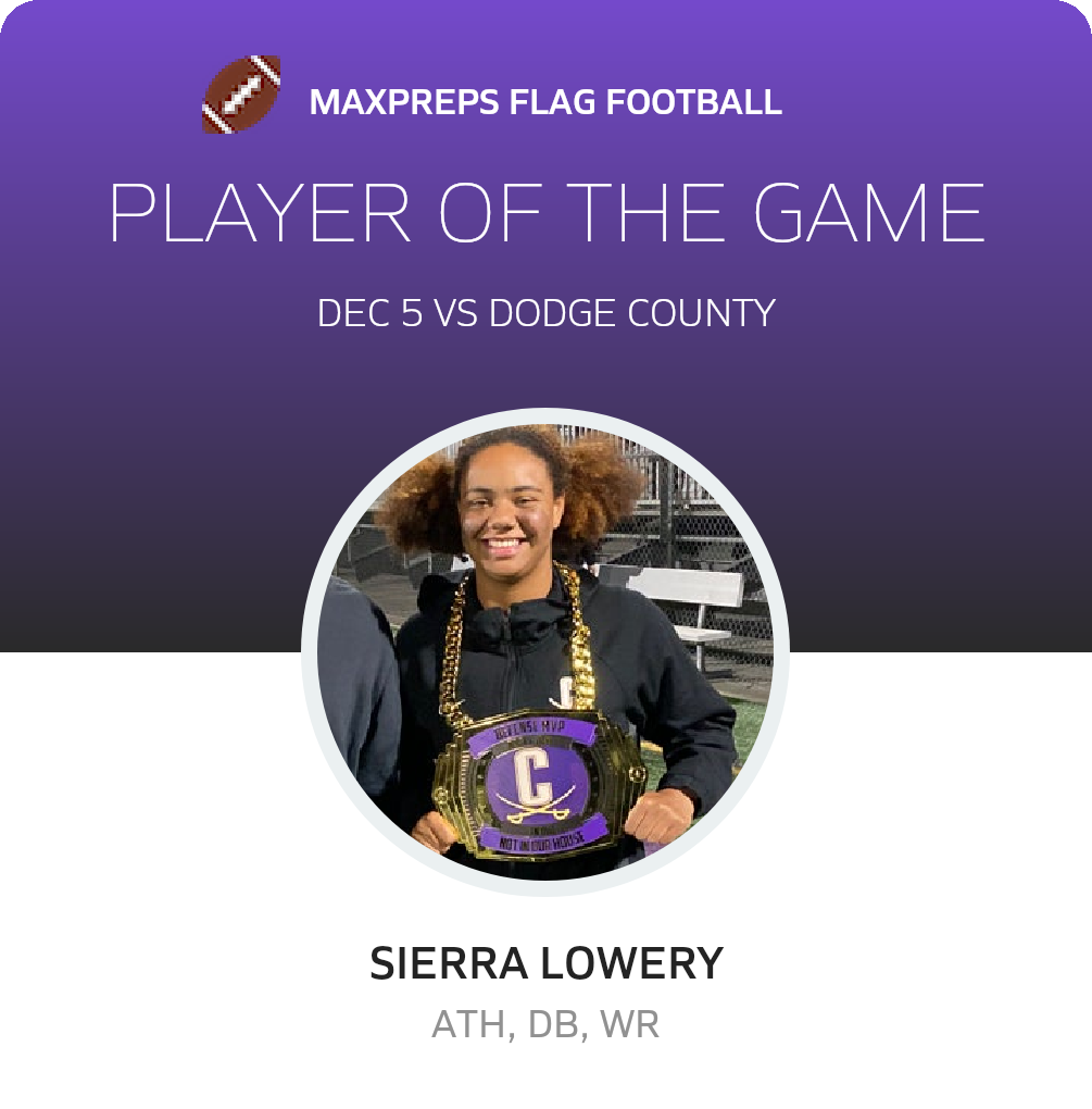 Congratulations to #9 Sierra Lowery for being selected the Calvary Day Girls Flag Football Player of the Game.