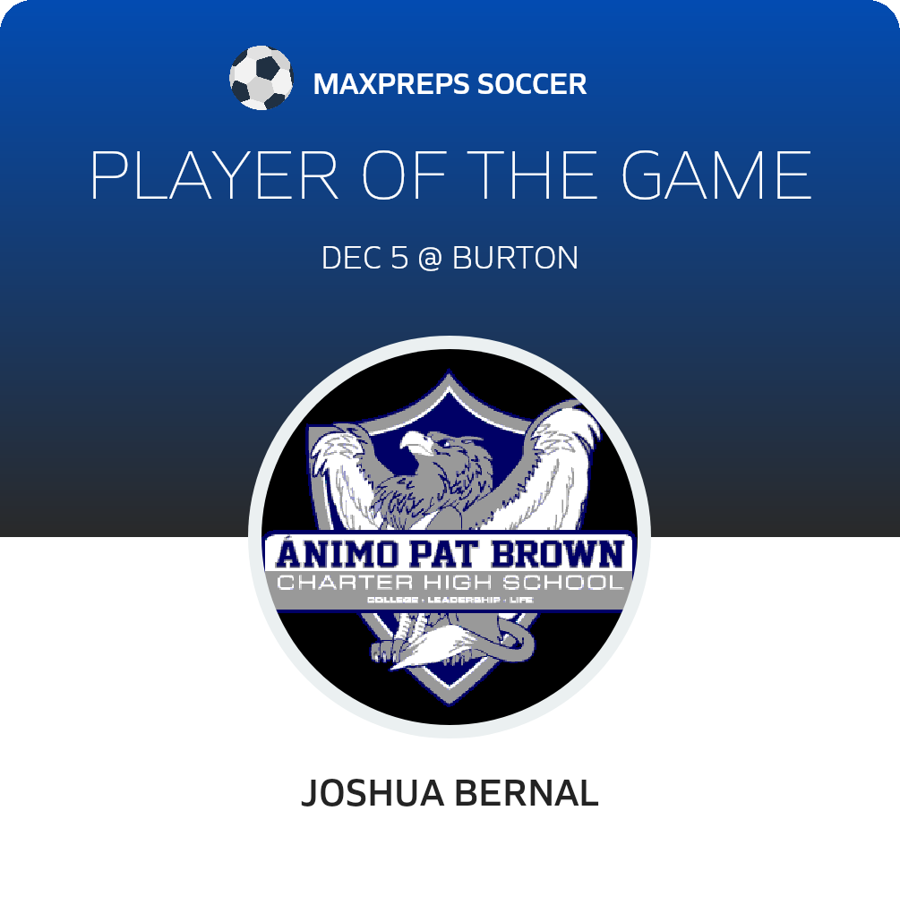 Congratulations to Joshua Bernal for being selected the Animo Pat Brown Soccer Player of the Match.