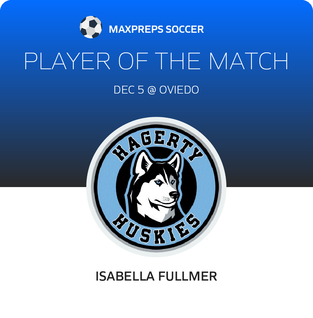 Congratulations to #20 Isabella Fullmer for being selected the Hagerty Girls Soccer Player of the Match.