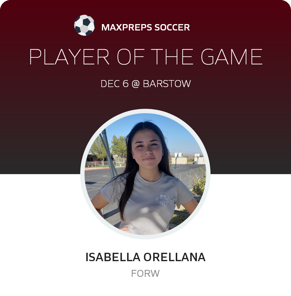 Congratulations to #10 Isabella Orellana for being selected the University Prep Girls Soccer Player of the Match.