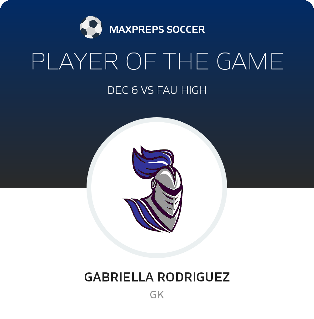Congratulations to #1 Gabriella Rodriguez for being selected the Highlands Christian Girls Soccer Player of the Match.