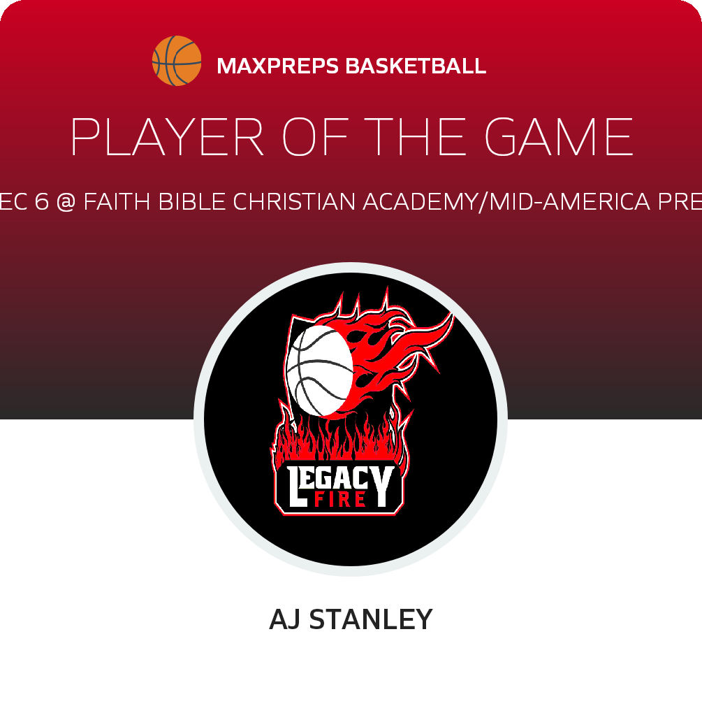 Congratulations to #0 AJ Stanley for being selected the Legacy Academy JV Basketball Player of the Game.