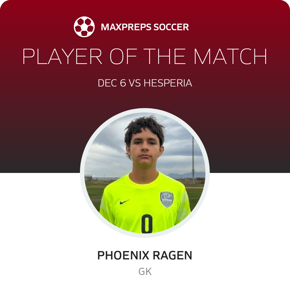Congratulations to #0 Phoenix Ragen for being selected the Granite Hills Soccer Player of the Match.
