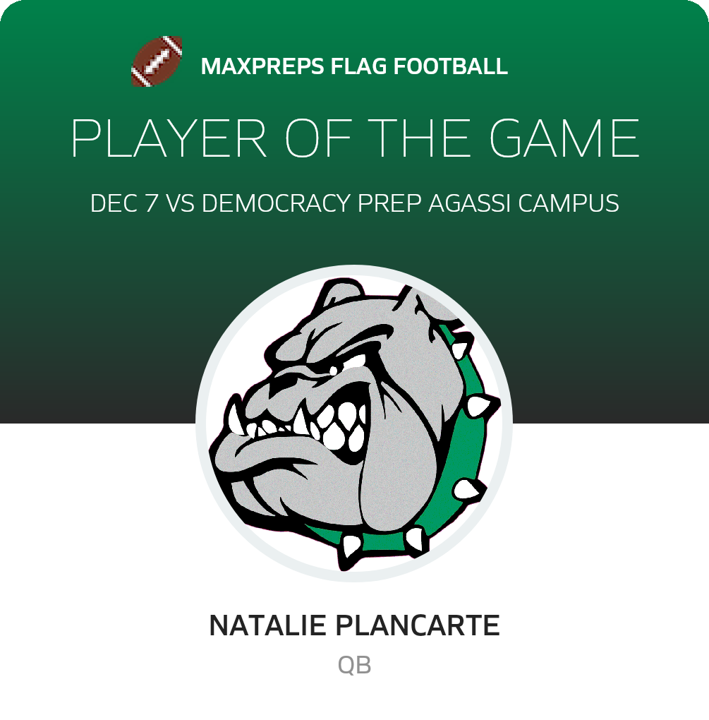 Congratulations to #12 Natalie Plancarte for being selected the Virgin Valley Girls Flag Football Player of the Game.