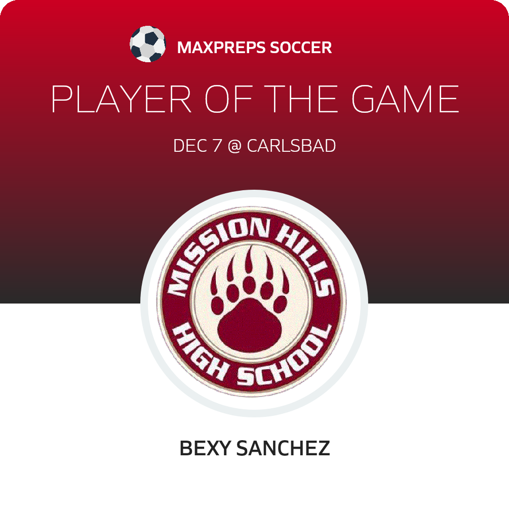 Congratulations to #4 Bexy Sanchez for being selected the Mission Hills Girls Soccer Player of the Match.