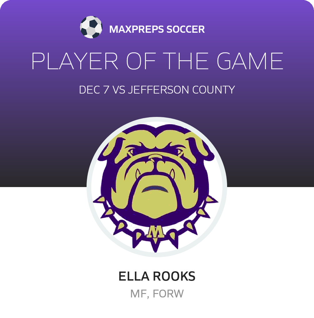 Congratulations to #10 Ella Rooks for being selected the Marianna Girls Soccer Player of the Match.