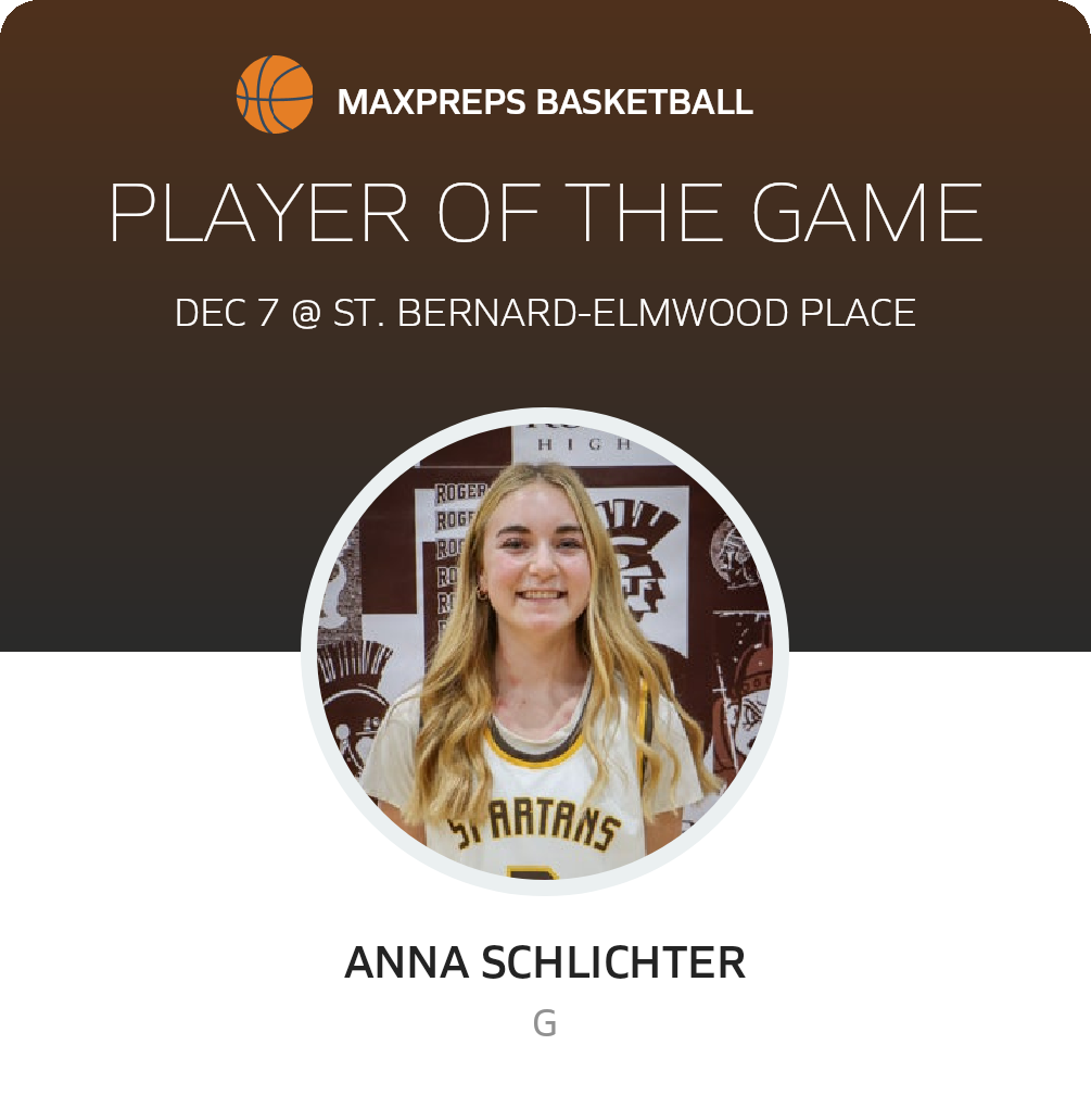 Congratulations to #3 Anna Schlichter for being selected the Roger Bacon Girls Basketball Player of the Game.