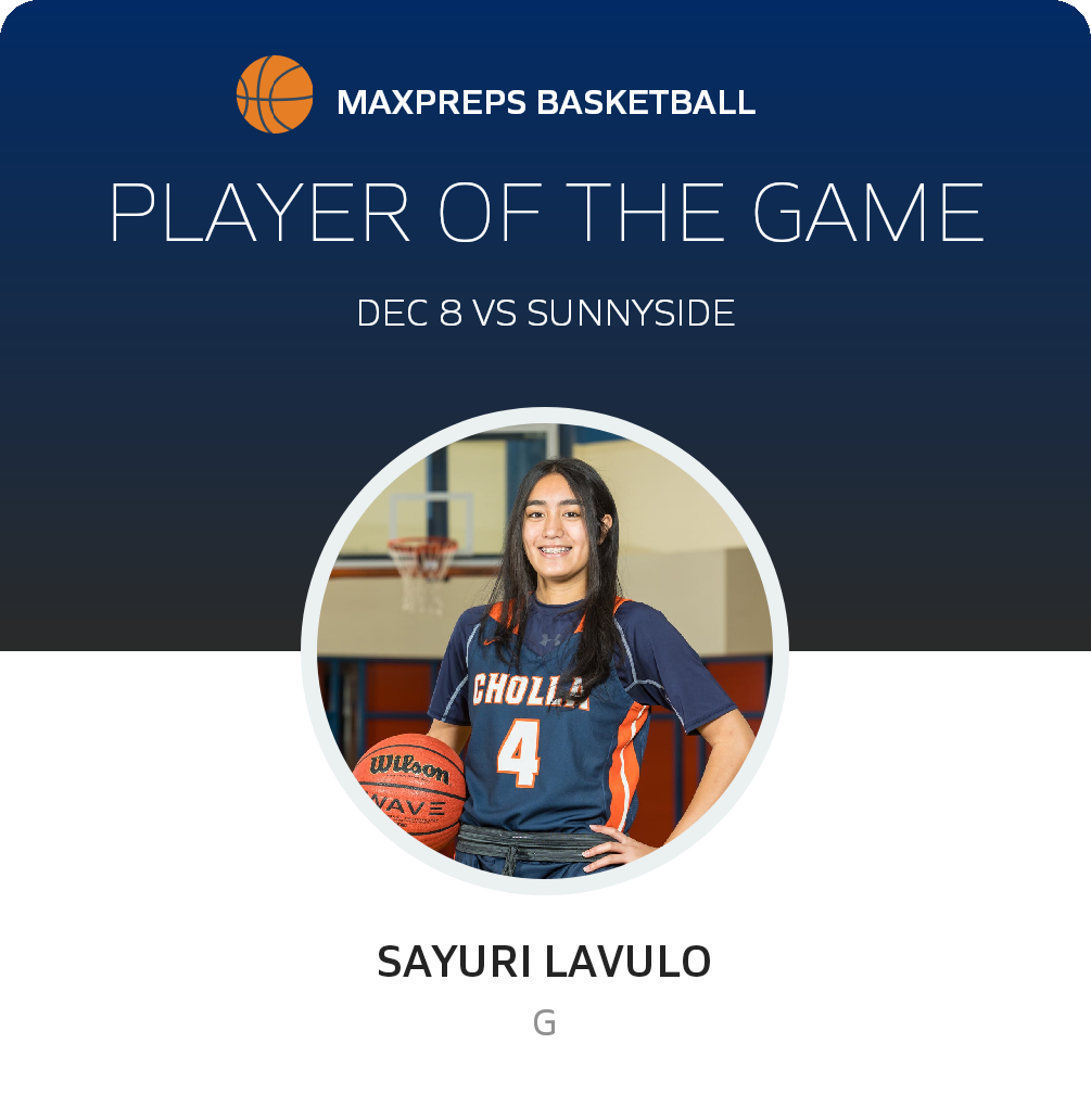The Chargers now own a 1-4 record. They play next when they travel to St. Augustine Catholic for a non-league outing on Tuesday, December 13. Cholla will encounter a Wolves squad coming off a 36-30 non-league win over Valley Union (Elfrida, AZ). The Wolves record now stands at 4-3.