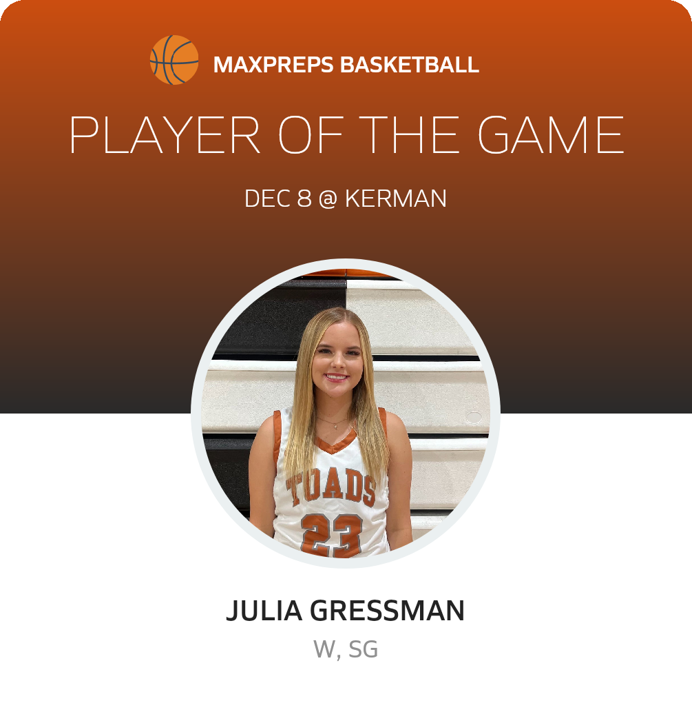 December 8, 2023: Kerman, CA 93630 In Friday's non-league outing, the Kerman Lions (Kerman, CA) basketball squad beat the visiting Coalinga Horned Toads (Coalinga, CA), by a margin of 43-35.
