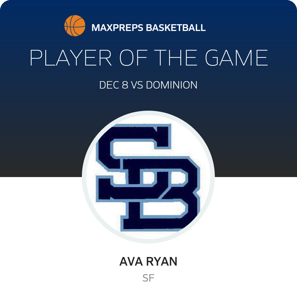 Congratulations to #12 Ava Ryan for being selected the Stone Bridge Girls Basketball Player of the Game.