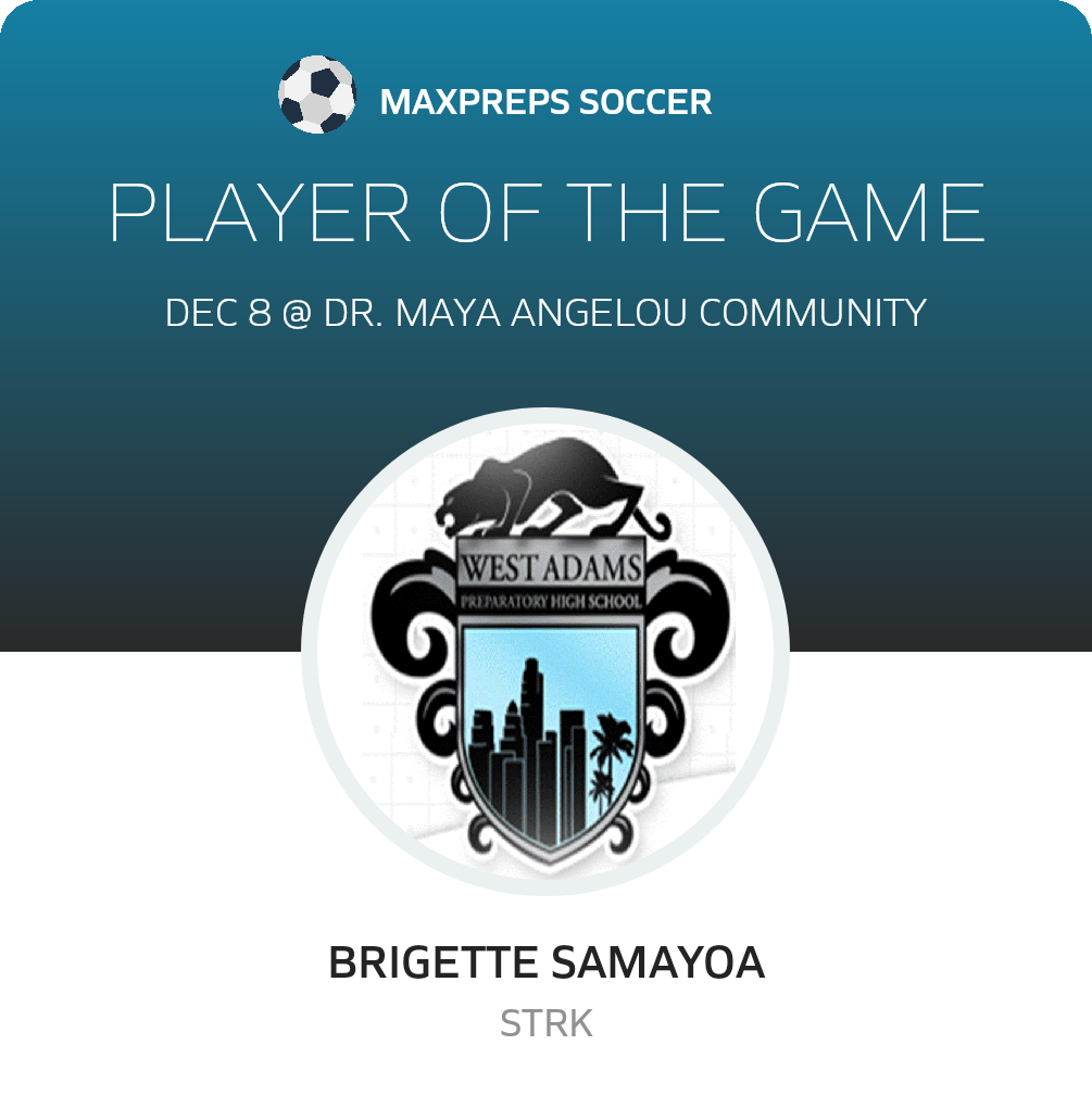 Congratulations to #13 Brigette Samayoa for being selected the West Adams Girls JV Soccer Player of the Match.