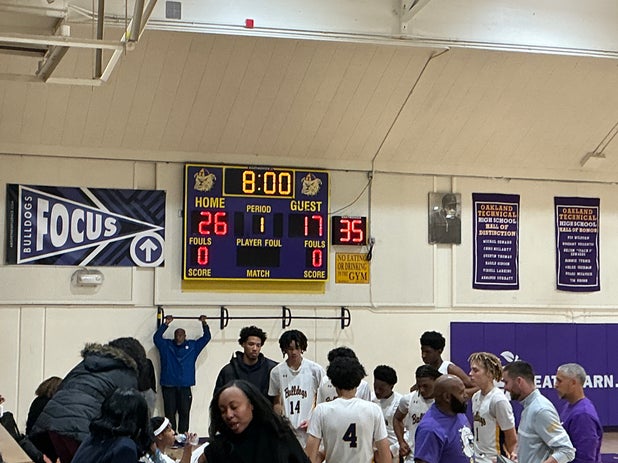 December 8, 2025: Oakland, CA 94611 The Oakland Tech Bulldogs basketball team scored 81 points and limited the visiting Alameda Hornets to 59 in the Bulldogs non-league triumph on Monday.