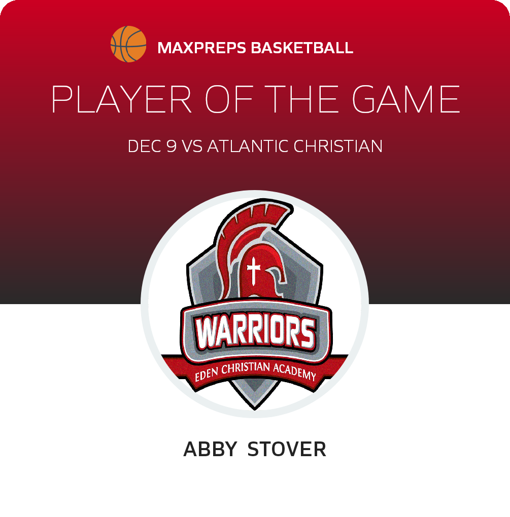 Congratulations to #12 Abby Stover for being selected the Eden Christian Academy Girls Basketball Player of the Game.
