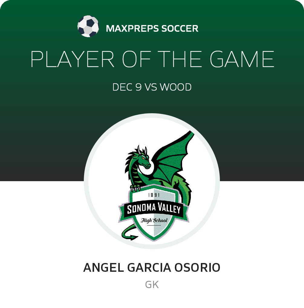 Congratulations to #1 Angel Garcia osorio for being selected the Sonoma Valley Soccer Player of the Match.