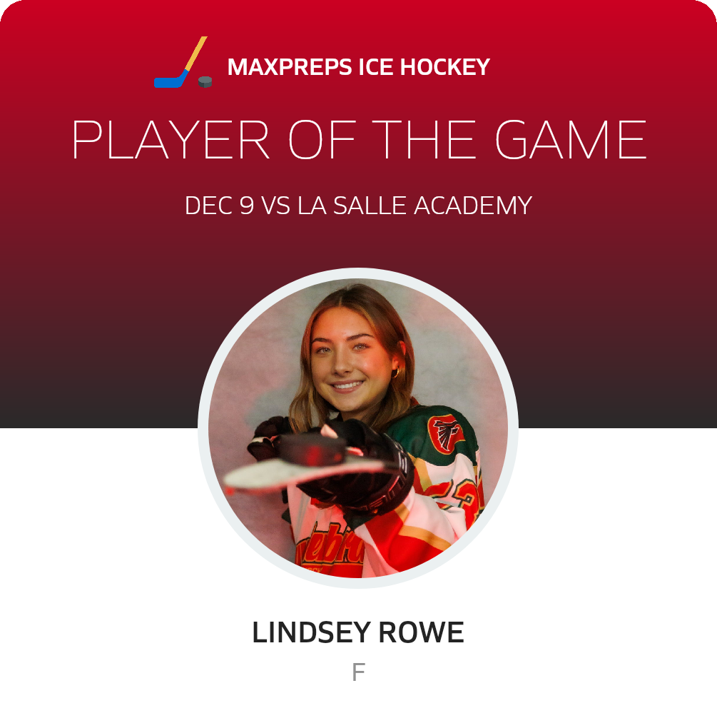 Congratulations to #23 Lindsey Rowe for being selected the Cranston West Girls Ice Hockey Player of the Game.