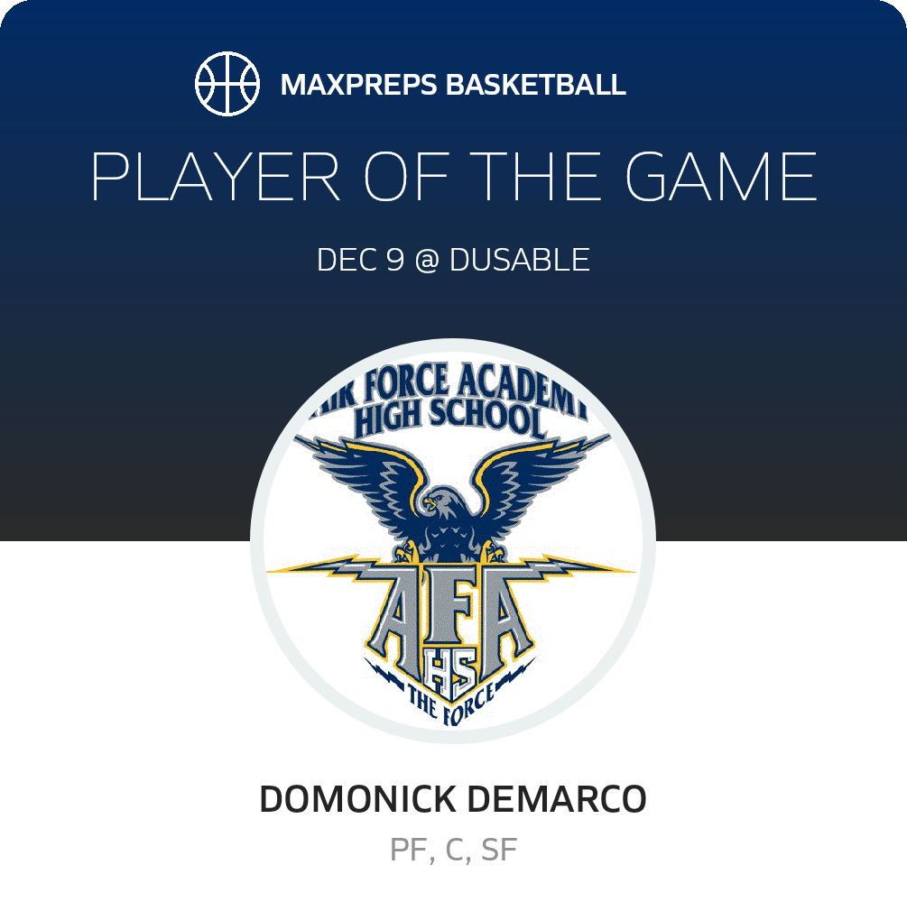 Congratulations to #21 Domonick Demarco for being selected the Air Force Academy Basketball Player of the Game.