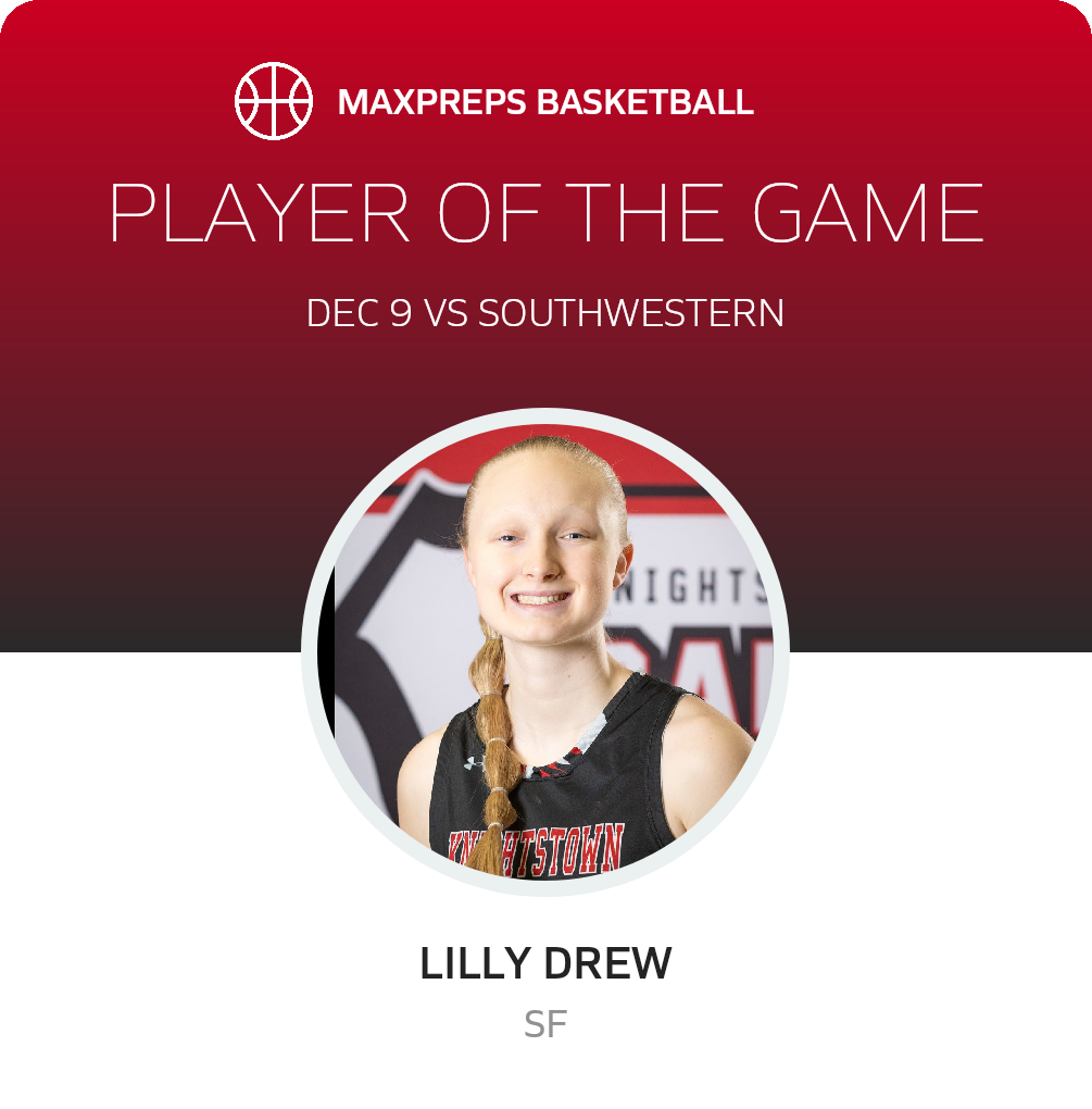 Congratulations to #11 Lilly Drew for being selected the Knightstown Girls Basketball Player of the Game.