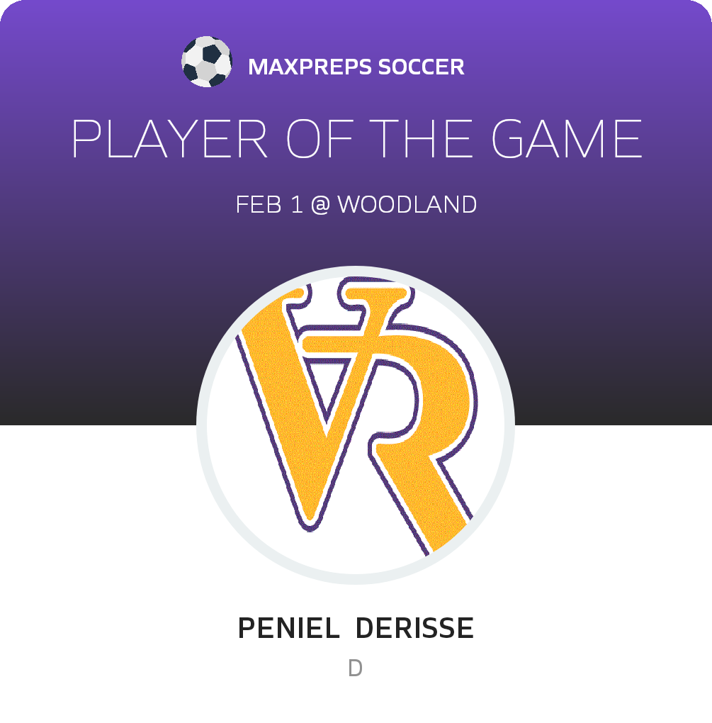 Congratulations to #22 Peniel Derisse for being selected the Villa Rica Soccer Player of the Match.