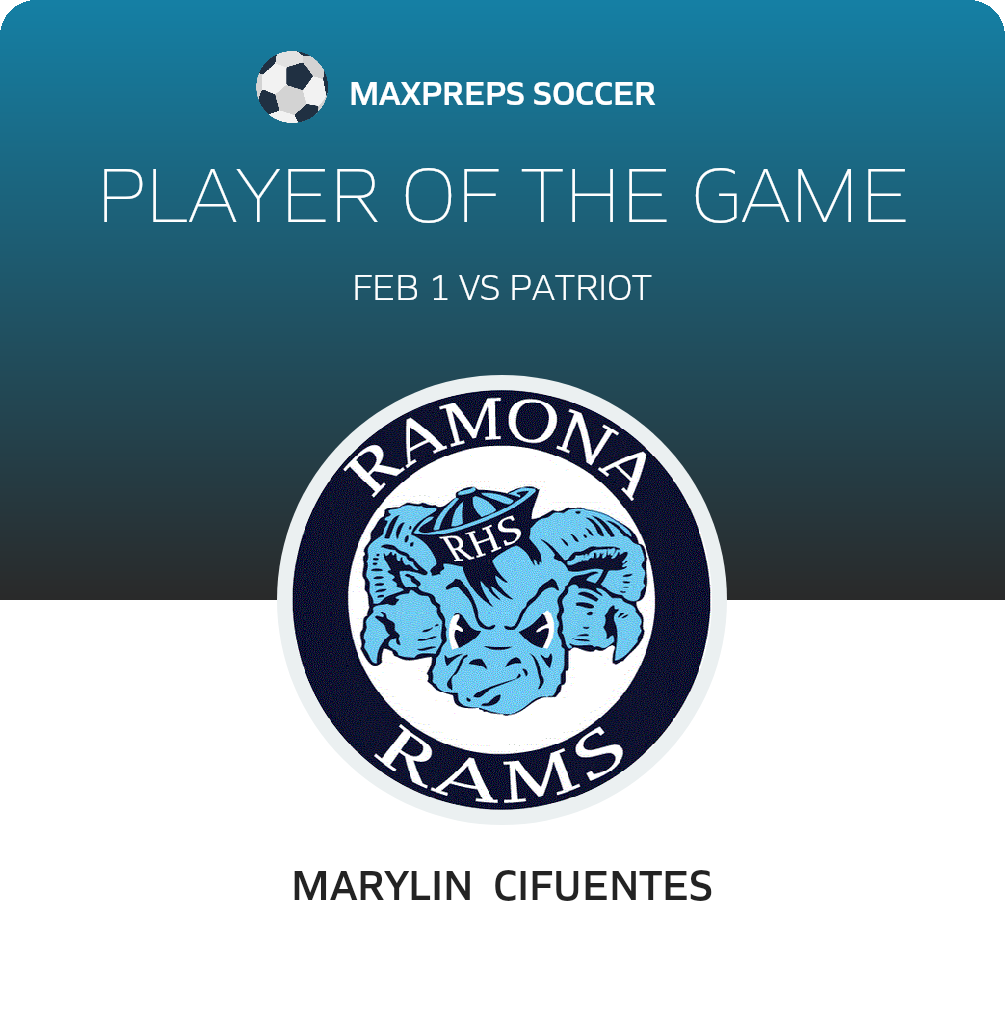 Congratulations to #7 Marylin Cifuentes for being selected the Ramona Girls Soccer Player of the Match.