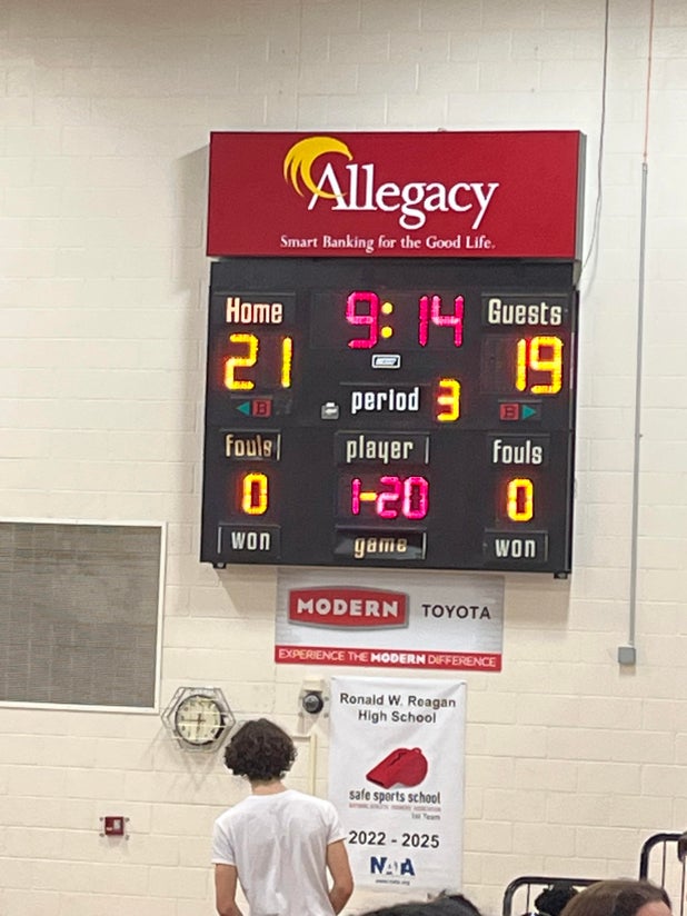 February 10, 2023: Pfafftown, NC 27040 The Reagan Raiders (Pfafftown, NC) basketball nipped the visiting R.J. Reynolds Demons (Winston-Salem, NC), 36-29 in Friday's league test.