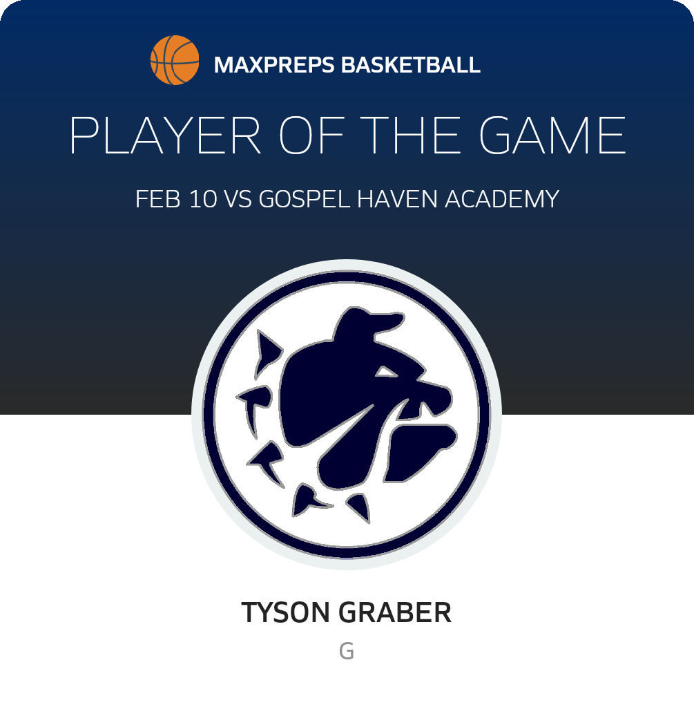 Congratulations to #25 Tyson Graber for being selected the Pleasant View Christian Basketball Player of the Game.