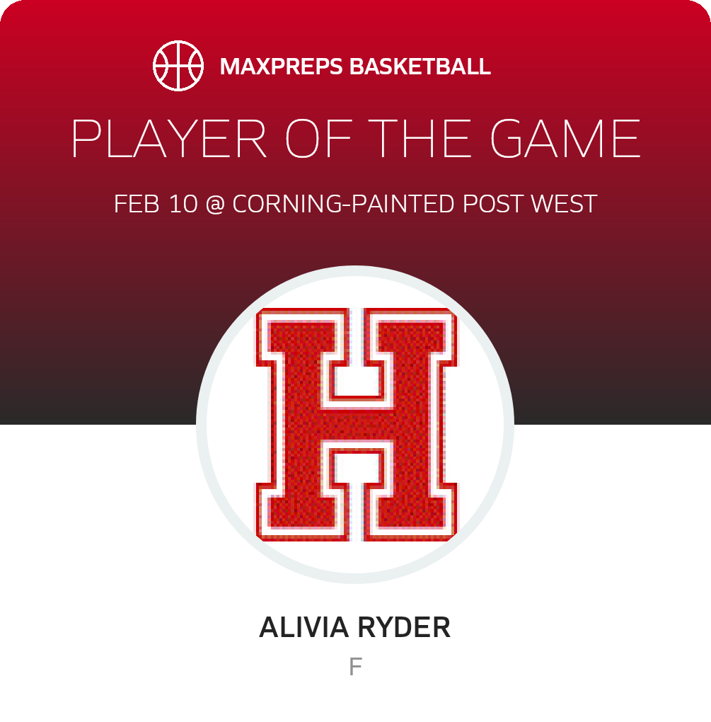 Congratulations to #11 Alivia Ryder for being selected the Hornell Girls JV Basketball Player of the Game.